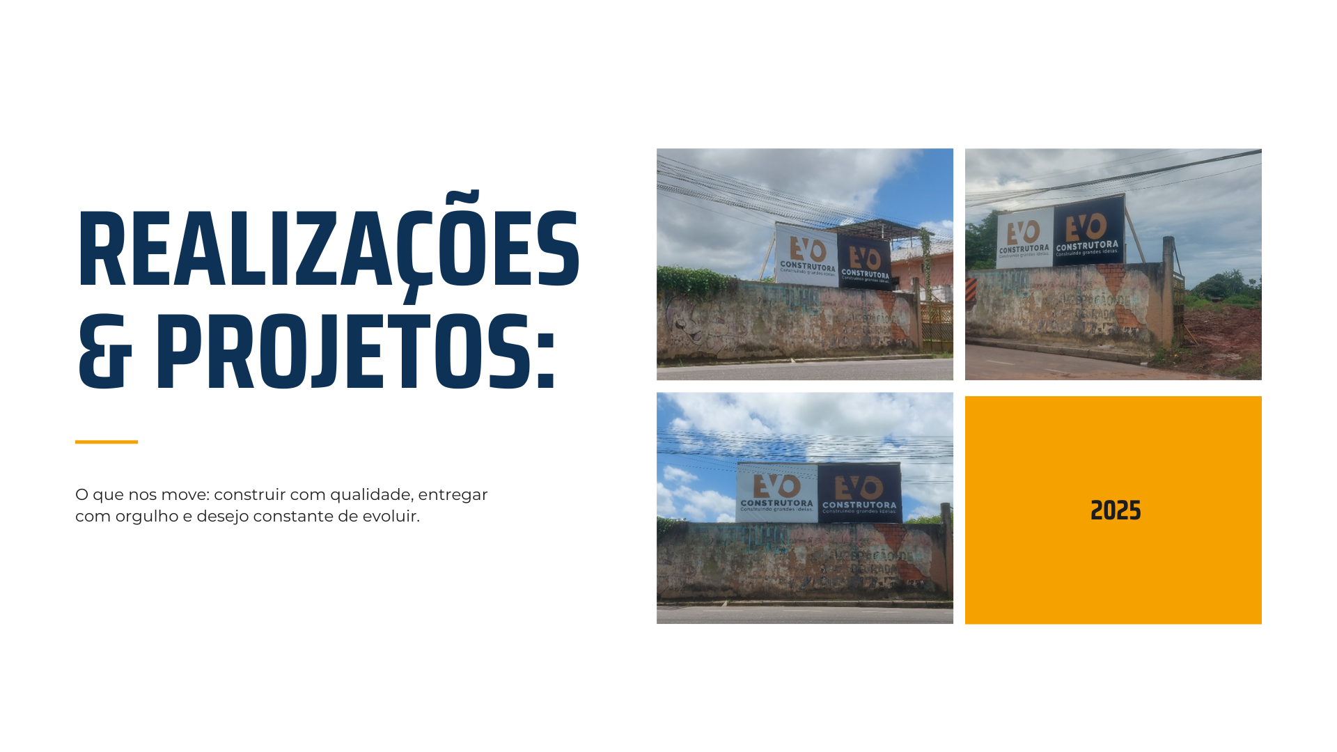 A EVO Construtora nasceu da sólida trajetória da antiga CAS Engenharia, fundada em abril de 2013, com o propósito de oferecer serviços de construção e execução de projetos com qualidade, inovação e comprometimento. Desde o início, nossa missão sempre foi acompanhar a evolução do mercado e incorporar as mais recentes tecnologias da construção civil, garantindo excelência em cada obra realizada.